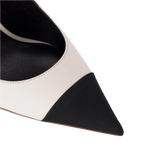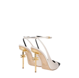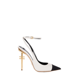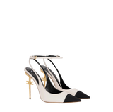 Escarpins slingback en cuir nappa avec embout en tissu gros-grain et lanière de cheville réglable. Ils se caractérisent par un talon sculpté en métal doré.