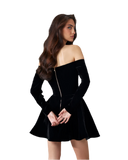 The SILENE dress in black is the epitome of refined elegance and contemporary style. Crafted from premium black velvet, this mini dress is destined to be the center of attention at any event.