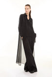 These silk trousers combine luxury and elegance with their fluid, lustrous fabric and tailored, high-waisted fit. The smooth texture drapes beautifully, creating a refined silhouette perfect for both formal and everyday wear. Subtle pleats and a delicate sheen add a touch of sophistication to any ensemble.