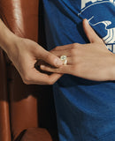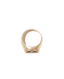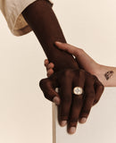 Revisité au masculin, l’intemporel Bowie garde son identité tout en proposant de nouveaux codes, dans une version en argent brossé. Pour sa chevalière, l’aspect de métal satiné contraste avec son cadre d’or, enroulé comme une corde autour de l’insert diamant. Un jonc ouvert reprend cette identité, toujours en bakelite noire ou blanche.