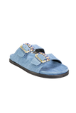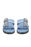 Step into luxury and comfort with our Denim Sandals. Made with soft denim and embellished with Swarovski crystals, these sandals are a must-have for any fashion aficionado. Perfect for a day out or a night on the town, these sandals will elevate any outfit and keep you feeling stylish and comfortable.